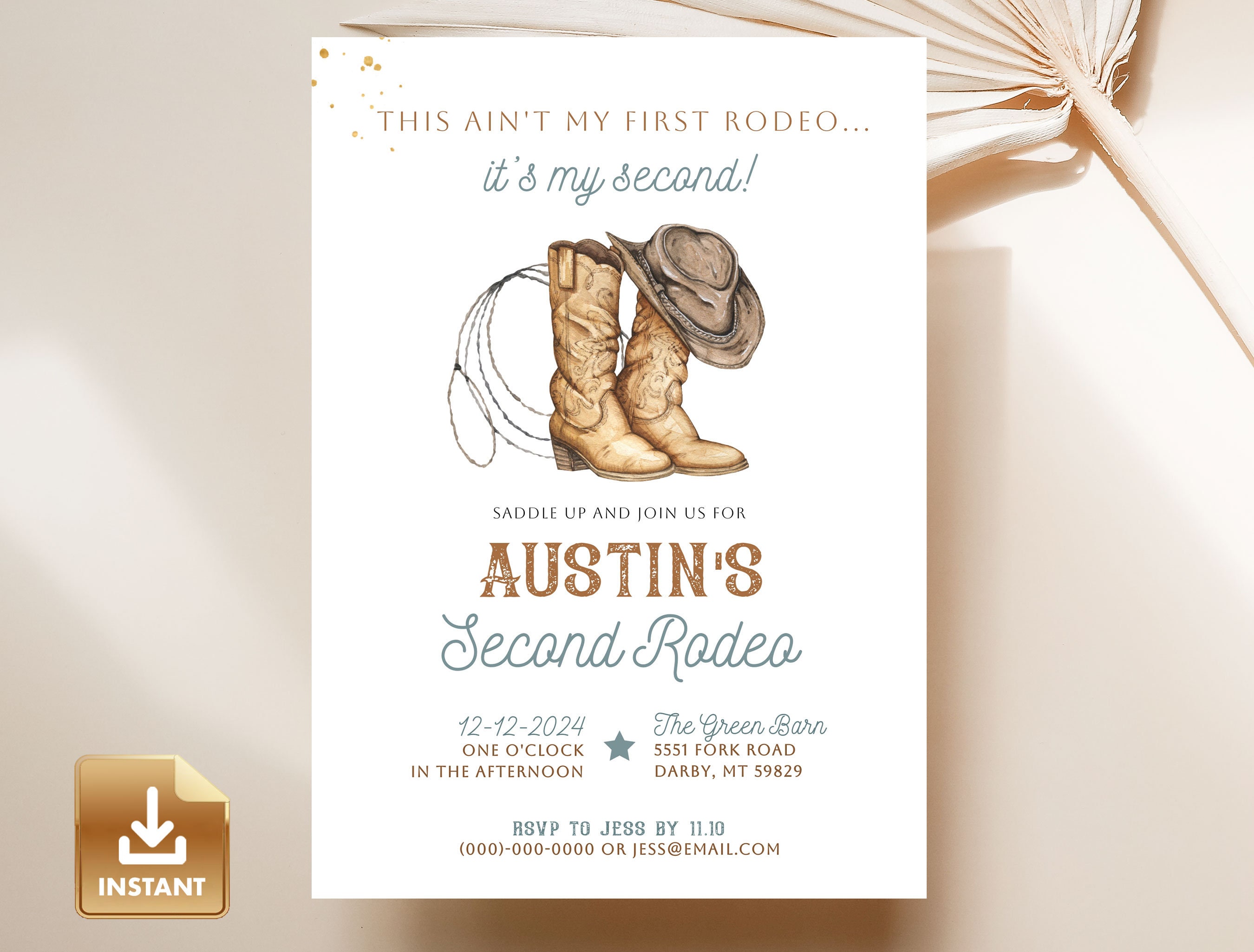 2nd Rodeo Birthday Party Invitation Cowboy Boots Invite Wild Etsy